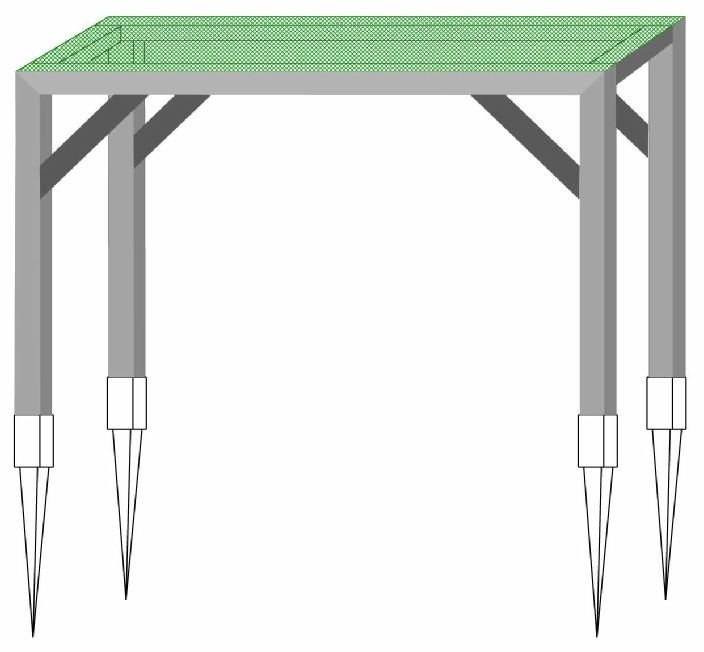 - Fabriquez une petite pergola démontable avec des mâts de 7*7 de classe 4, 4 pieds galvanisés à chaud pour poteau 7*7 cm, à enfoncer, du filet anti-grêle ou à défaut de grillage métallique à maille le plus serré possible et dessous un grillage plastique vert 9*9 mm