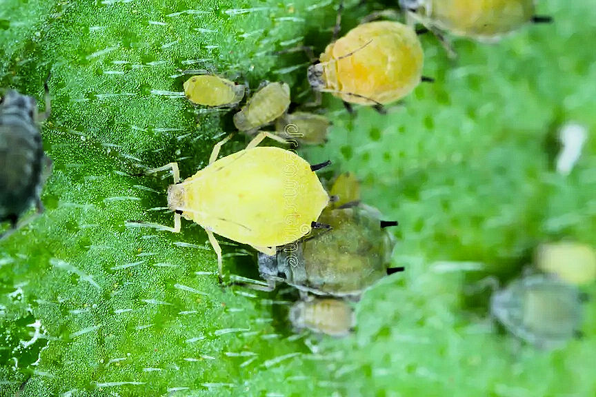 Il peut causer le jaunissement des feuilles, la chute de feuilles, la formation de fumagine à cause du miellat qu’il sécrète, et il peut transmettre certains virus végétaux.