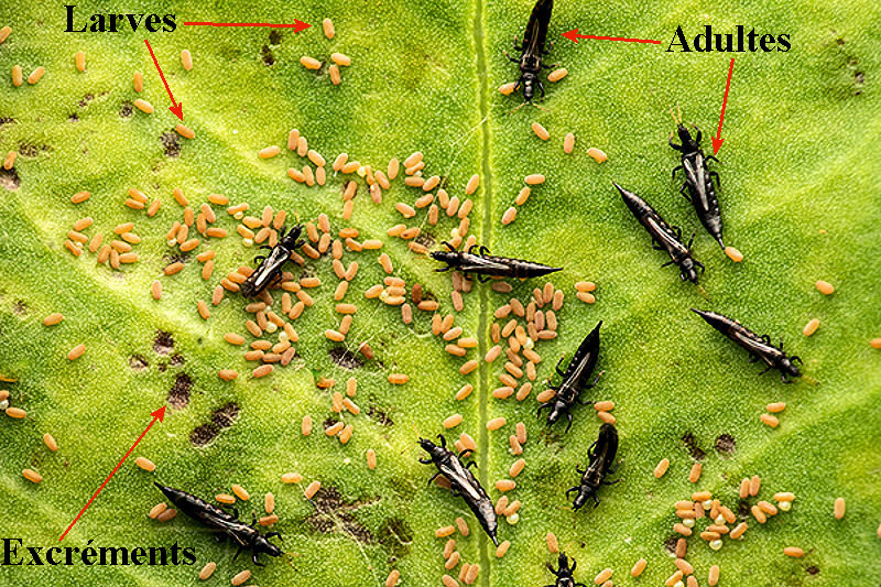 Les femelles pondent pendant la floraison dans les boutons mais cela n’endommage pas la plante.