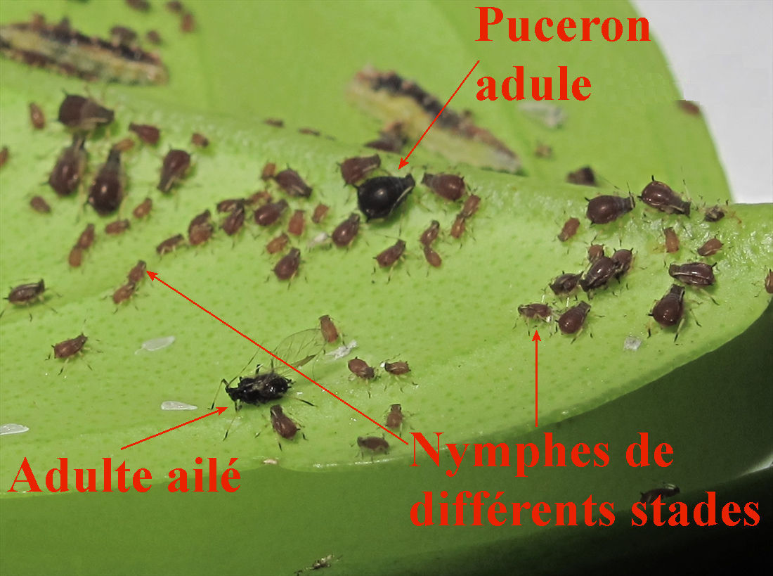 Ils sont souvent présents en colonies sur les feuilles et tiges.