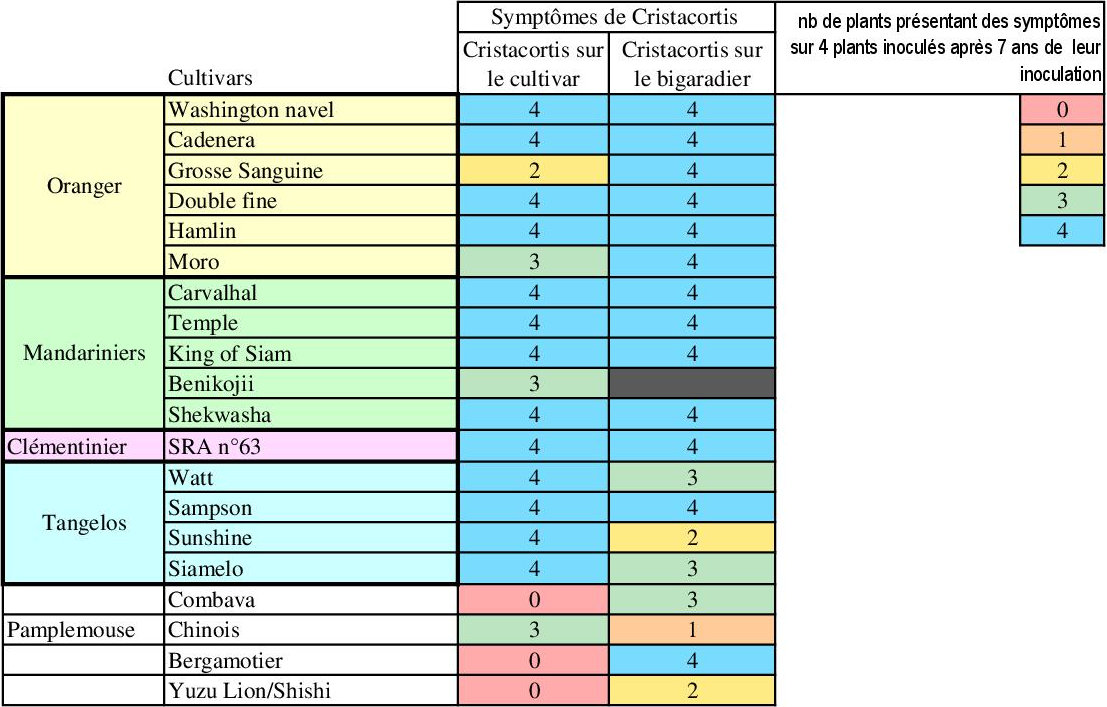 Les citronniers, les cédratiers, les Yuzus sont très sensibles, les orangers, les clémentiniers et mandariniers sont moyennement sensibles.